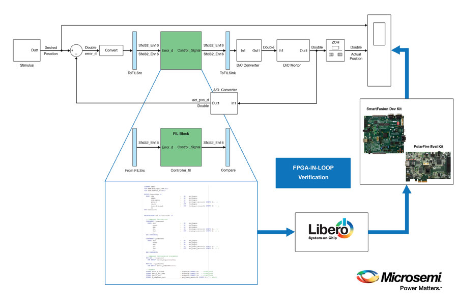 Yhteistyön myötä Mathworksin HDL Coder- ja HDL Verifier -työkaluja voidaan käyttää generoimaan testejä SmartFusion2- ja PolarFire-sarjan FPGA-piirien VHDL- ja Verilog-kuvauksille. Yritykset kutsuvat uutta suunnitteluvuota nimellä FIL eli Field Programmable Gate Array-in-the-loop.