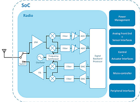 On myös olemassa fyysinen rajoitus sille, miten tehokas SoC-piirin vahvistin voi olla, mikä riippuu käytetystä valmistusprosessista. Langattomat SoC-piirit suunnitellaan tuottamaan paras teho/lähetysbudjetti käytettävissä olevalla virralla. Osan tästä määrittelee vastaanottimen herkkyys, mutta osa riippuu siitä, miten tehokkaasti ja hyvin SoC-piirin RF-osa on suunniteltu ja toteutettu. Herkkien digitaalisten ja analogisten CMOS-toimintojen sekoittaminen RF:n kanssa on aina ollut vaikeaa ja usein se johtaa edellä mainittujen kompromissien tekoon. Tuloksena voi olla kokonaislähetystehon pienentäminen, vastaanottimen herkkyydestä tinkiminen tai lähetyskertojen (tunnissa/päivässä/viikossa) vähentäminen.