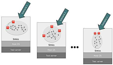 Jos tarkastellaan esimerkiksi teollisen tuotantolaitoksen, junan tai tunnelinporauskaluston ohjausjärjestelmiä, ne eivät ole eristettyjä järjestelmiä, vaan laajemman kokonaisuuden osajärjestelmiä. Jotta päästäisiin tavoitteeseen, jota monet testaajat ovat pitäneet utopistisena, on kyettävä simuloimaan sekä ohjaustietokonetta, sen tueksi rakennettua järjestelmää että koko ulkopuolista maailmaa sen ympärillä. Tässä yhteydessä tarvitaan todennäköisesti yhden simuloinnin sijasta moniosaista simulointiprosessia useista eri kohteista, jotka kaikki kommunikoivat keskenään.