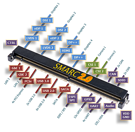 SMARC 2.0 sisältää jopa neljä PCI Express -liitäntää eli yhden enemmän kuin 1.1-standardi. Joillakin alustoilla voidaan käyttää optiona PCI x4 -väylää, joka tuo merkittäviä parannuksia suorituskykyyn. USB:ssä tilanne on samanlainen, sillä kolmen USB 2.0 -portin lisäys tuo käyttöön jopa kuusi USB 2.0 -liitäntää kahden USB 3.0:n rinnalle. Tämä korostaa SMARC-standardin suorituskykyä x86-alustoilla, koska nämä prosessorit vaativat aina enemmän USB-portteja.