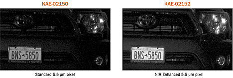 Lisäksi tarjolla on optiona pikselirakenne, joka parantaa lähellä infrapunaa olevien aallonpituuksien havaitsemista ilman, että kuvan terävyys kärsii (Modulation Transfer Function). Tämä kaksinkertaistaa anturin herkkyyden NIR-aallonpituuksilla (Near Infra Red) kuten 850 nanometrissä, mikä voi olla tärkeää NIR-aallonpituuksia havaitsemaan pyrkivissä sovelluksissa. Esimerkiksi kuvan 5 molemmat kuvat on otettu yöllä 850 nanometrin valaisussa näyttäen auton rekisterikilven ja keulan. Koska rekisterikilvet USA:ssa (ja suuressa osassa maailmaa) suunnitellaan heijastamaan NIR-valoa, ne ovat hyvä esimerkki osoittamaan tällä alueella toimivan kuva-anturin suorituskykyä. KAE-02152-kennolla kuvatun kuvan lisäkirkkaus tulee suoraan uuden pikselirakenteen tuomasta lisäherkkyydestä NIR-alueella. Koska nämä kaksi 1080p-piiriä ovat täysin keskenään vaihdettavia, kameranvalmistajat voivat helposti kehittää yhden suunnittelun tukemaan molempia vaihtoehtoja tällä resoluutiotasolla.