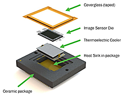 IT-EMCCD-kennot ovat tarjolla myös versioina, joihin on integroitu termosähkinen jäähdytin suoraan koteloon. Tämänkaltainen jäähdytys – joka laskee toimintalämpötilan -10 °C tai sen alle – voi olla kriittinen osa suorituskykyä kameroissa, jotka toimivat erittäin alhaisen valovoiman oloissa, koska se vähentää anturin tuottamien häiriösignaalien määrää. Tämä integroitu kotelorakenne yksinkertaistaa jäähdytetyn kameran suunnittelua, minkä ansiosta tuotteet saadaan markkinoille nopeammin ja parantavat kameran suorituskykyä ilman, että tarvitaan erityisestä jäähdytyksen suunnitteluosaamista. Tämä kaikki auttaa alentamaan kameran kustannuksia loppukäyttäjälle.