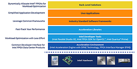 Kuva 1. Intelin Xeon-palvelinprosessorin ja FPGA:n yhteydessä käytettävä kiihdytinpino.