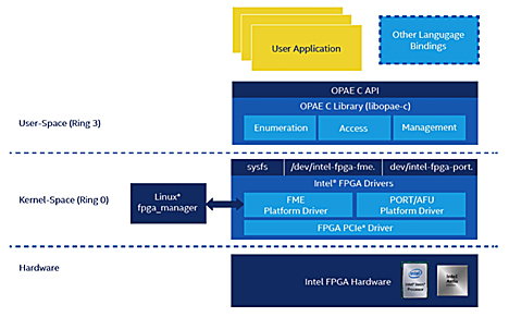 Kun yhä enemmän FPGA-piirejä käytetään pilvi- ja datakeskussovelluksissa koneoppimisessa, tarvetta on tehtävää helpottaville standardeille ja sovelluskehyksille. Open Programmable Acceleration Engine (OPAE) on yksi avoimista yhteisöistä, jonka pyrkimyksenä on yksinkertaistaa ja virtaviivaistaa FPGA-piirien integrointia kiihdytinsovelluksia varten.