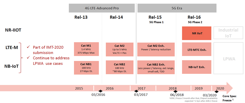 NB-IoT ja LTE-M esiteltiin Release 13 -määrityksissä, jotka toivat kapeakaistaisen perustason ilmarajapinnan erittäin yksinkertaisille LPWA-laitteille. Määritysten avulla on mahdollista liittää massiivisia määriä laitteita verkkoon haastavalla peitolla ja erittäin pitkällä akkutoiminta-ajalla. Usieta parannuksia ja lisätoimintoja tekniikkaan tuotiin Release 14- ja 15-määrityksissä.