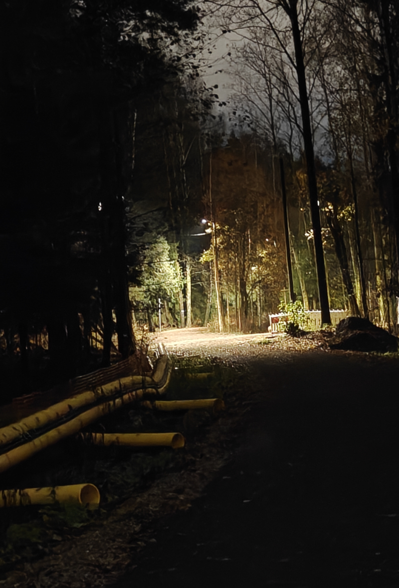 Ylläolevassa kuvassa on otos iltahämärässä valaistulta kävelytieltä, ja se näyttää hyvin, mihin OnePlus 15:n laajakulmakamera pystyy – ja mihin ei aivan vielä. Vastavalo-olosuhteet ovat haastavat: katuvalot luovat voimakkaita kontrasteja, ja tummat alueet jäävät helposti alivalottuneiksi. Kuvan keskiosa on kuitenkin yllättävän tarkka, ja valonlähteiden ympärillä on vain maltillisesti heijasteita. Värit toistuvat luonnollisina, mutta varjoalueilla yksityiskohtia katoaa ja tummat sävyt puuroutuvat hieman. Kokonaisuutena laajakulmakamera selviää tilanteesta kohtuullisesti, mutta dynaaminen alue ei vielä yllä aivan parhaiden kilpailijoiden tasolle.