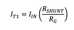 On hyvä huomata, että yksinkertaistetussa piirikaaviossa resistanssien R3 ja RG läpi kulkeva virta on aina tulovirran sekä vastusten RSHUNT ja RG suhdeluvun funktio. Vastusten RSHUNT ja RG todellisten resistanssien kokonaisarvon tulee vain olla sellainen, että virta pysyy mosfetin T1 vaatimissa rajoissa. Vastusten RSHUNT ja RG suhde voidaan määrittää seuraavasti: