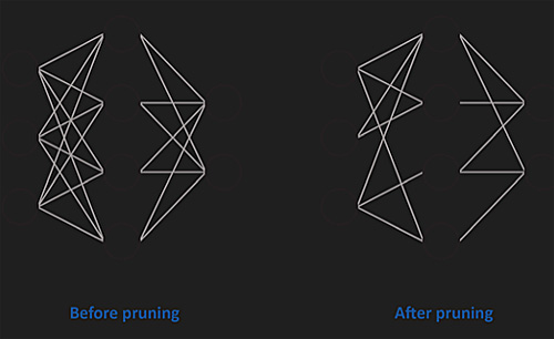 Datankäsittelyn osalta monet tekoälyalgoritmit (mm. konvoluutioneuroverkko CNN) kamppailevat monimutkaisten mallien kanssa. Suosittu pakkaustekniikka on karsinta (kuva 2), josta on neljä eri tyyppiä: painoarvon karsinta, yksiköiden/neuronien karsinta ja iteratiivinen karsinta.