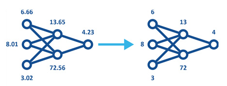 Kuva 3. Kvantisoidut mallit käyttävät alhaisempaa tarkkuutta. Tämä vähentää muisti- ja tallennusvaatimuksia sekä parantaa energiatehokkuutta, mutta säilyttää mallille saman muodon.