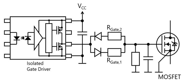 Kuva 2. Eristetyllä hilaohjaimella varustetun SiC-mosfetin hilapiirin perusrakenne.
