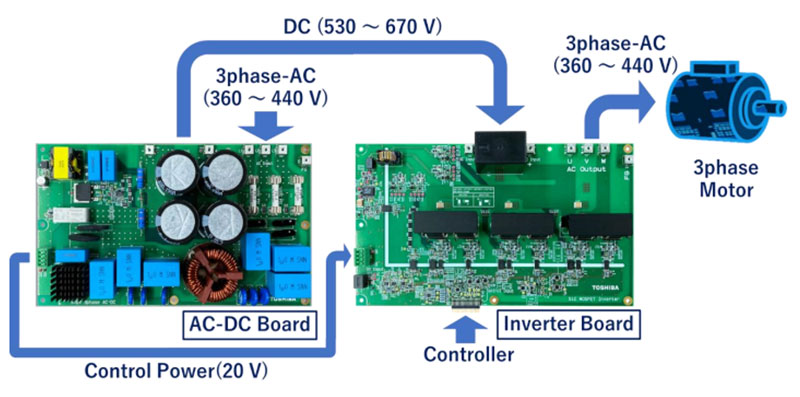Sähkömoottorien ohjauksessa siirrytään IGBT-transistoreista SiC-kytkimiin niiden lukuisten etujen vuoksi. Esimerkiksi AC-moottorin invertterin hyötysuhde voidaan nostaa yli 98 prosenttiin, jolloin rakenteen tiheyttä voidaan lisätä. Kaiken takana ovat piikarbidin pienemmät kytkentähäviöt, korkeampi käyttölämpötila, parempi lämmönjohtavuus ja suurempi kytkentätaajuus, kirjoittaa Toshiba Electronics Europe.