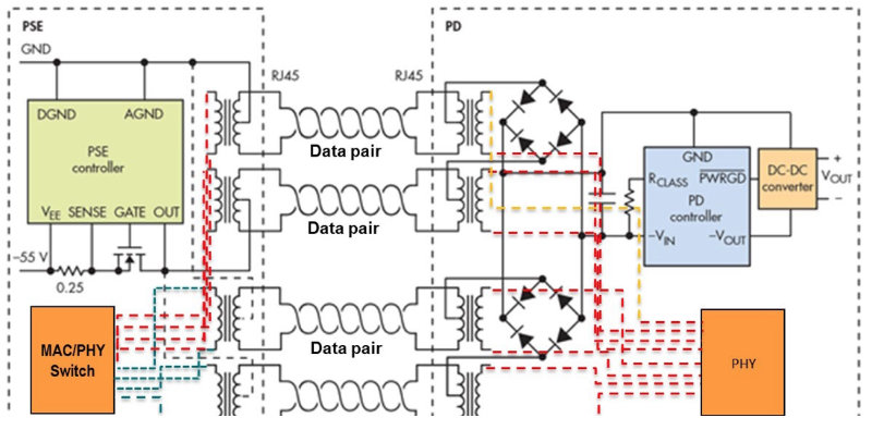 Kuva 1: PoE-moodin mukainen piirin toiminta (lähde: Pulse).