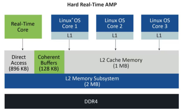 Cache-koherentti väylämatriisi ja joustava L2-muisti ovat keskeisiä AMP-toiminnalle. ECC-suojattu L2 voidaan konfiguroida välimuistiksi, LIM-tilaan determinististä käyttöä varten tai scratchpad-muistiksi hartejen väliseen viestintään.