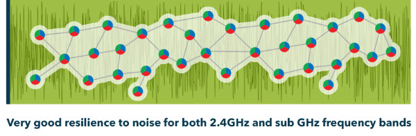 NeoMesh tarjoaa erittäin hyvän häiriönsietokyvyn sekä 2,4 gigahertsin että alle gigahertsin taajuusalueilla.
