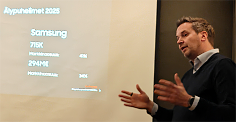 Samsungilla on vahva asema Suomen älypuhelinmarkkinoilla. Maajohtaja Mika Engblomin mukaan S24-sarjaa myytiin viime vuonna 80 tuhatta kappaletta. Uudelta, juuri myyntiin tulevalta S25-sarjalta odotetaan jopa parempaa selvästi edistyneiden tekoälyominaisuuksien ansiosta.